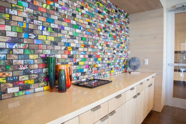 Si on aime la couleur, le carrelage en bois de vieux skate défoncé peut-être une riche idée. Une entreprise californienne s’est même spécialisée dans le business. En plancher, en paroi, pour habiller une colonne, en mobilier, Art Of Board décline le planche du sol au plafond. Chacun ses goûts!