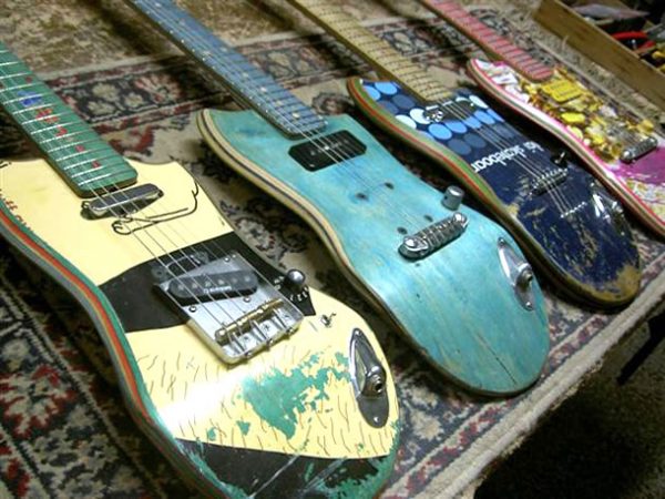Et pourquoi pas en guitare électrique? C’est l’idée d’Ezequiel Galasso (luthier) et Gianfranco De Gennaro Gilmour (Pro Skater et guitariste), deux argentins passionnés de musique qui on lancé « Skate Guitar« . L’histoire ne dit pas s’ils transforment aussi de vieilles guitares en skate.