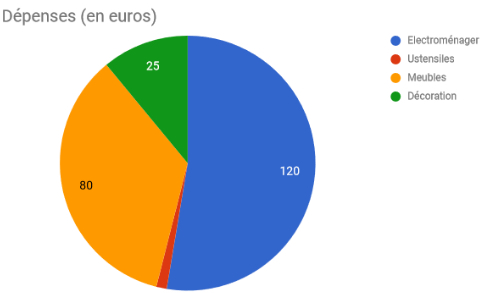 Mes dépenses pour m’installer dans mon 42m² sont de 228€ réparties comme ceci: