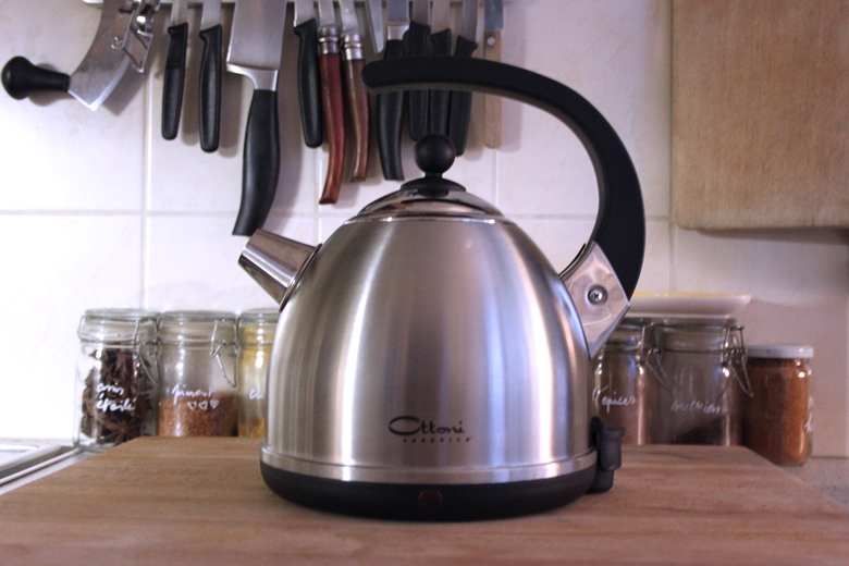 3. La bouilloire électrique sans PCB. Oui ! C’est possible ! J’ai trouvé ce modèle italien de la fabrique Ottoni, entièrement en acier 18/10 avec aucune pièce en plastique au contact de l’eau. C’est bon pour votre santé et la planète (l’acier est recyclable à l’infini), un peu moins pour le porte-monnaie : ~ 80 euros, le prix de l’intelligence ? 😉