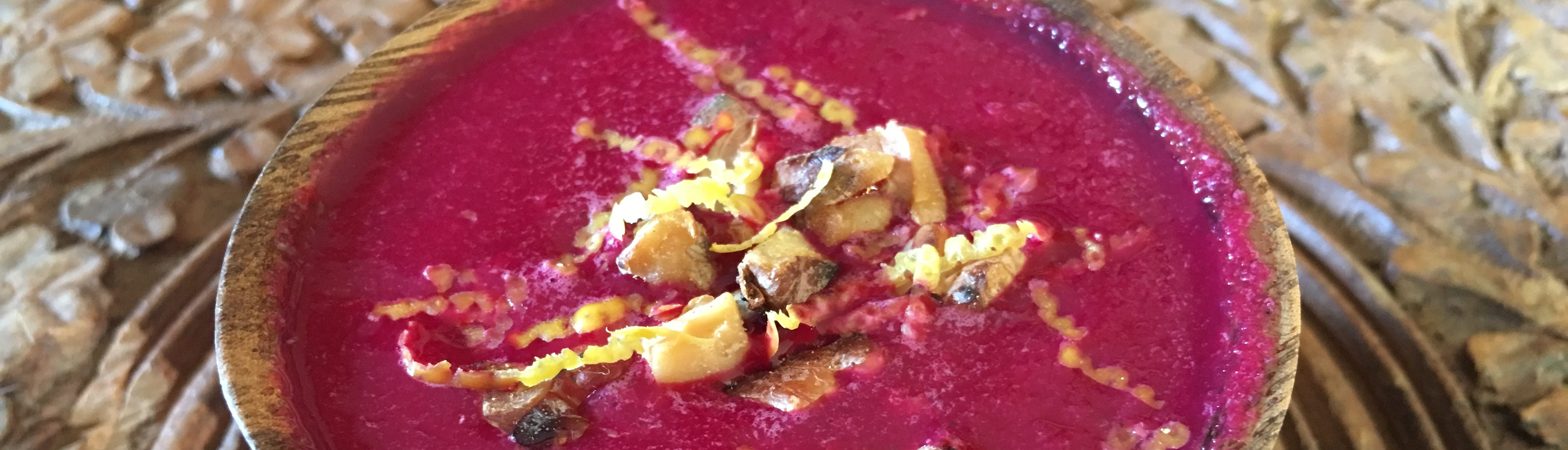SOUPE DE BETTERAVE CRUE, GINGEMBRE & NOIX TORRÉFIES