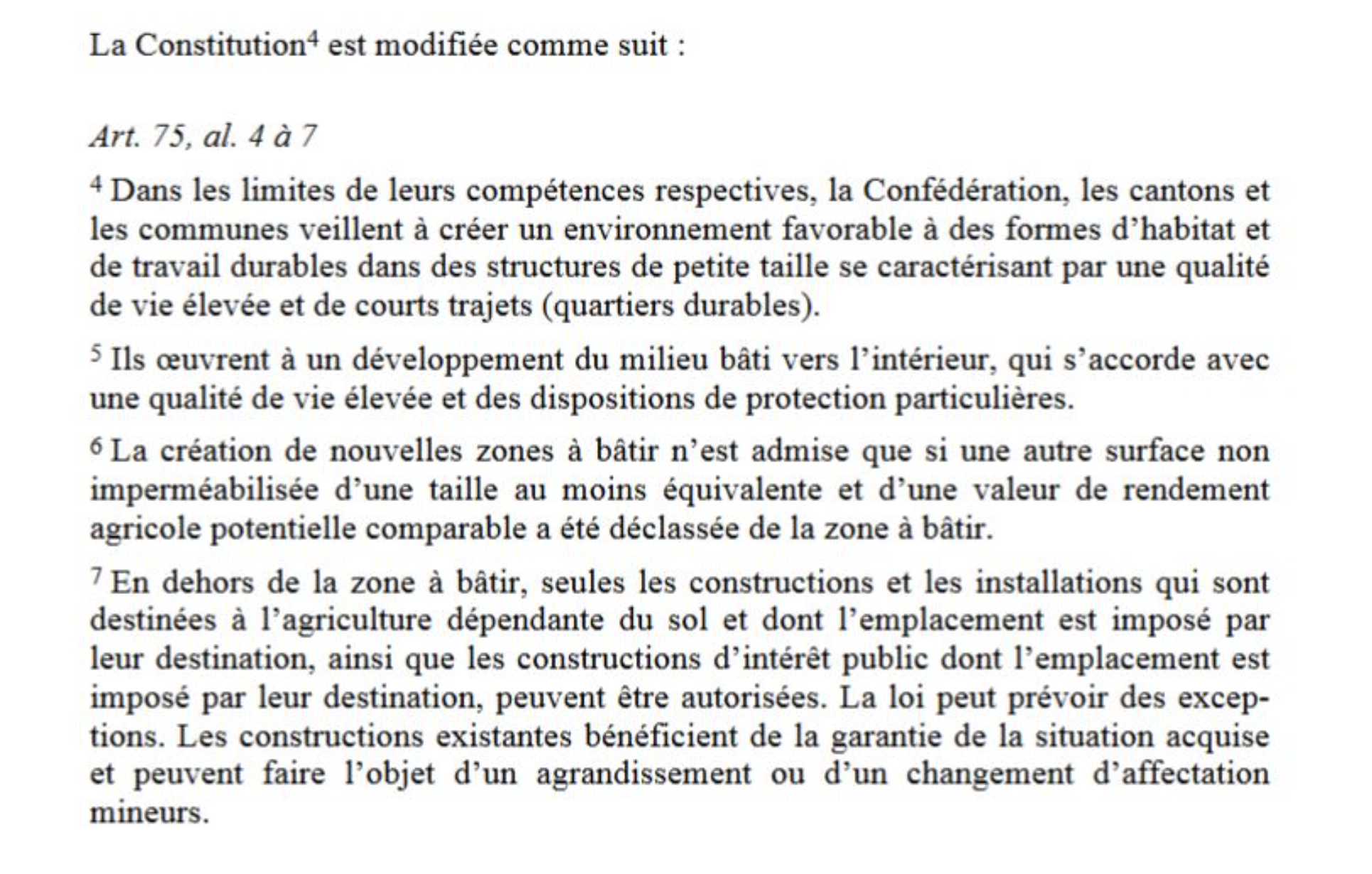 Vous l’aurez compris, aujourd’hui je vais vous parler du sujet des prochaines votations en Suisse du 10 février 2019 : L’initiative « Stop Mitage », lancée par les Jeunes Vert.e.s, qui propose que l’on modifie la Constitution de cette manière :